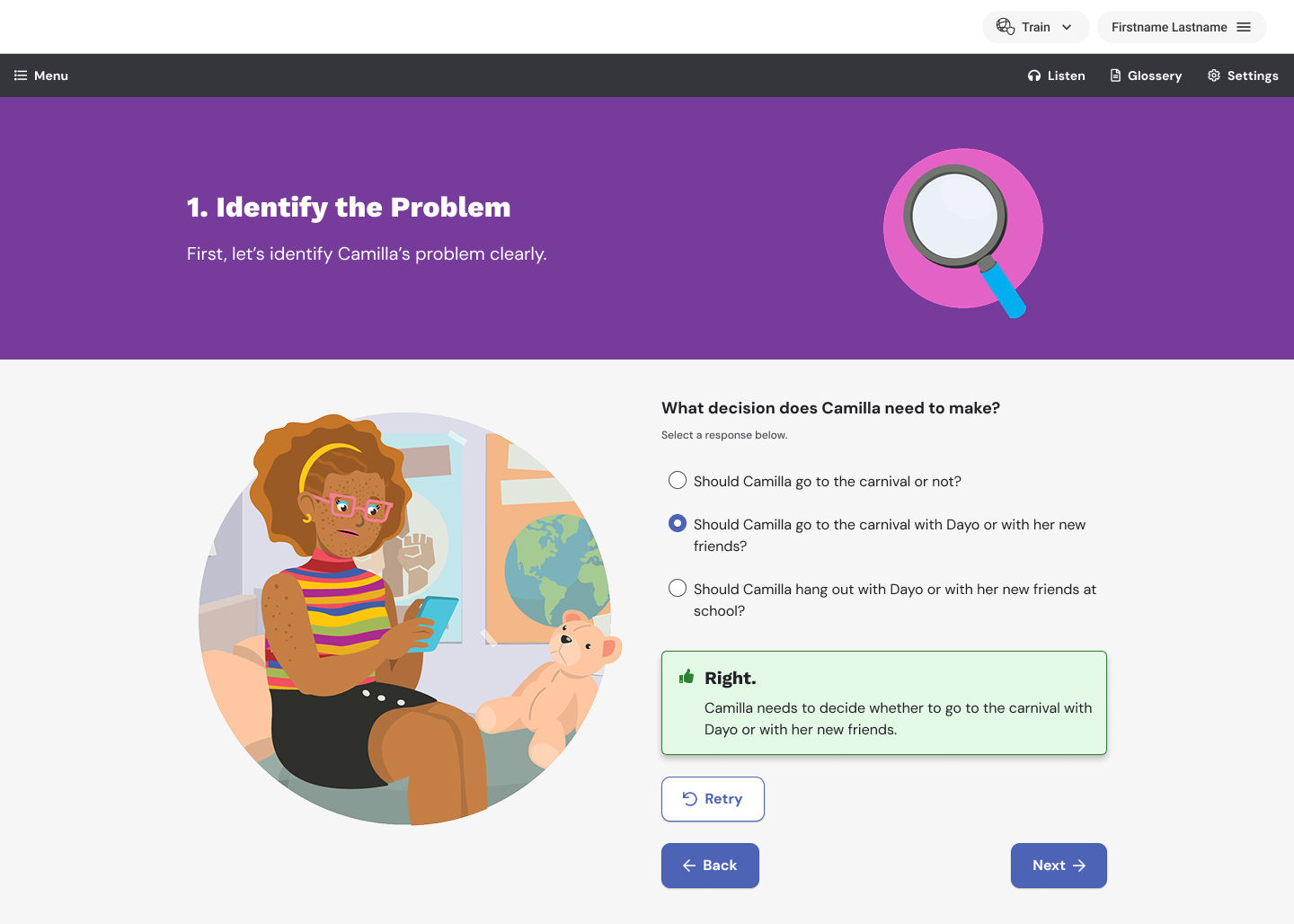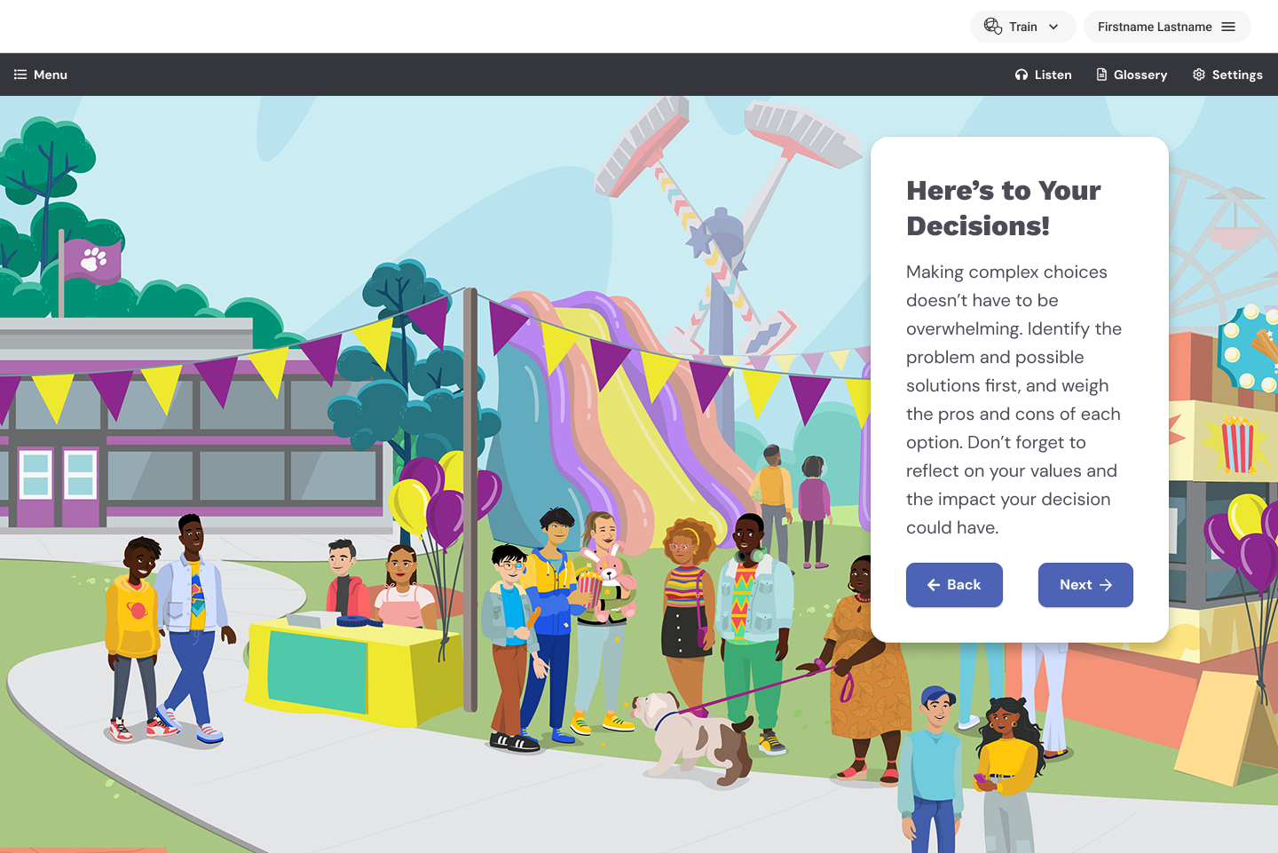 Character Playbook is a free online course sponsored by the NFL and United Way that teaches students how to establish and maintain healthy, supportive relationships with their classmates. Students engage in true-to-life scenarios that explore the fundamentals of communication, conflict resolution, and managing emotions.