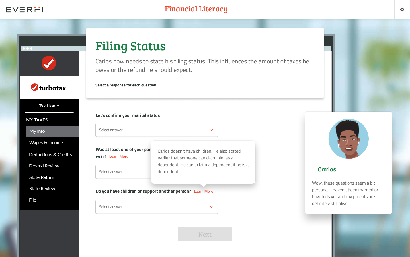 This Turbo Tax Simulation helps teens understand doing their taxes by walking them through the experience. Since 2021 it has helped millions of youth turn a daunting process into a manageable one.